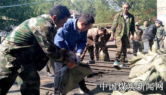 演习中,该矿调度指挥中心在接到救援请求后,立即启动地面防洪应急预案,快速下发救援命令,在规定时间内,各突击队小组手持救援工具迅速向灾情地点集结,各类备灾物资同时抵达,按照演习方案,对副一、副二及主井皮带机房进行0.5米防水堤坝构筑,并成功堵截洪水侵袭。现场各突击队小组紧密配合、反应迅速、分工明确,短时间内顺利完成了雨季“三防”地面防洪专项演习。