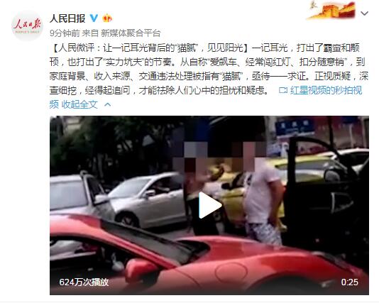 【人民微评:让一记耳光背后的“猫腻”,见见阳光】一记耳光,打出了霸蛮和颟顸,也打出了“实力坑夫”的节奏。从自称“爱飙车、经常闯红灯、扣分随意销”,到家庭背景、收入来源、交通违法处理被指有“猫腻”,亟待一一求证。正视质疑,深查细挖,经得起追问,才能祛除人们心中的担忧和疑虑。