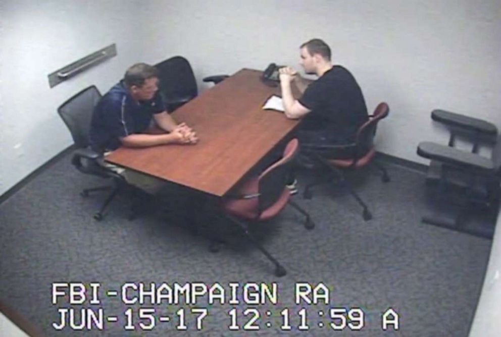 问询发生在2017年6月15日早晨,也就是调查人员刚刚追查到章莹颖失踪前所上车辆的信息后不久。伊州大学警探埃里克·斯帝沃森和FBI探员安东尼·曼加纳罗对克里斯滕森进行了问询。