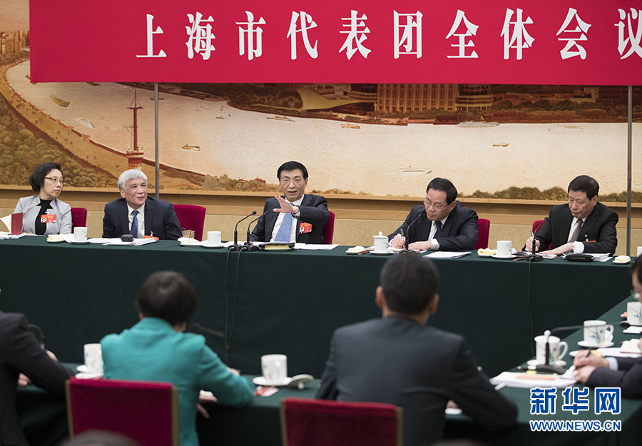 王沪宁在上海代表团参加审议。在听取应勇、张兆安、杭迎伟等代表发言后,王沪宁表示,上海发展站在新的起点上,要深入学习贯彻习近平新时代中国特色社会主义思想,学习贯彻习近平总书记关于上海工作的重要指示精神,引导党员、干部增强“四个意识”、坚定“四个自信”、做到“两个维护”。要继续当好全国改革开放排头兵,推进重要领域和关键环节改革,推动长三角更高质量一体化发展,构筑新时代上海发展战略优势。要做好新时代群团工作,使群团组织在党的群众工作中看得见身影、听得到声音、发挥出作用。要推动教育改革发展,办好人民满意的教育。要贯彻新时代党的建设总要求,在全面从严治党上走在前列。