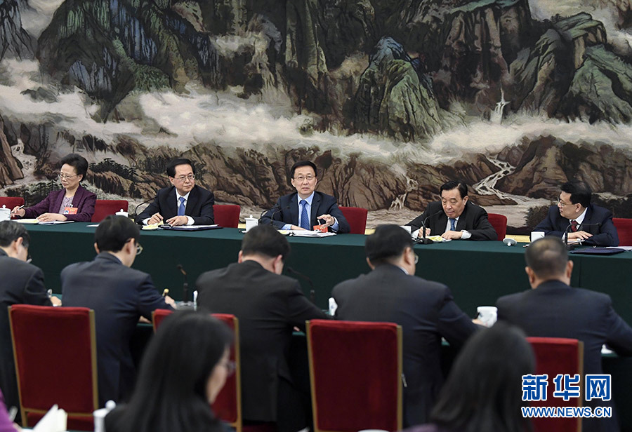 3月7日,中共中央政治局常委、国务院副总理韩正参加十三届全国人大二次会议浙江代表团的审议。新华社记者 高洁 摄