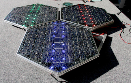 由该公司研发的太阳能面板拥有特殊六边形的外形设计,可让雨水迅速流走;全覆盖的低铁玻璃,透明度高,具有超强的负荷力与牵引力,可承重25万磅;内嵌LED灯,可远程遥控,为司机照明,指示方向或提供信息;内部还配有导热元件,可有效防止路面结冰或积雪。按照SolarRoadways公司的设想,未来还将加入针对电动汽车的无线充电功能。