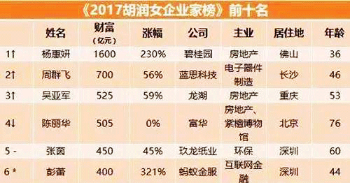 前几天,胡润研究院发布《2017胡润女企业家榜》。