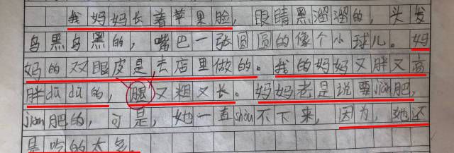 “我的妈妈又胖又高,胖嘟嘟的,腿又粗又长。”