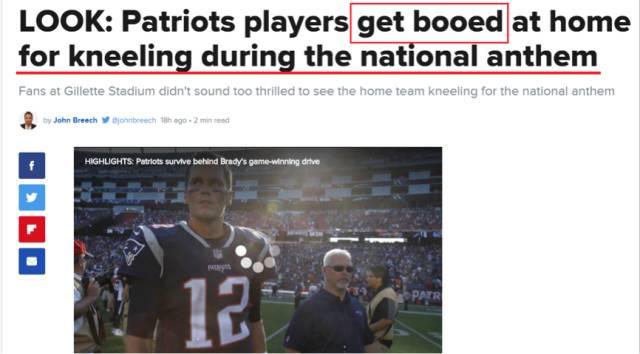因为就在球员们在球场上抗议美国国歌的时候,看台上的球迷们却并不十分支持他们,反而还有不少球迷发出了刺耳的嘘声…