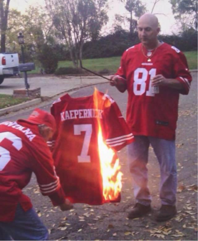 结果,卡佩尼克的做法和言论很快就引起了美国很多[爱国人士]的不满和谴责,认为他的做法是对国家和捍卫国家的军人的不尊重和侮辱。一些愤怒的爱国球迷甚至焚烧了他的球衣。
