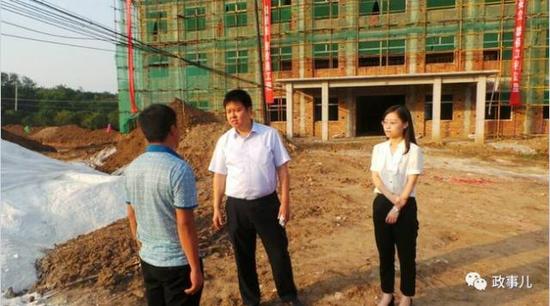 据现场图片显示,在骆峪黄湾社区的工地上,夏鹏与当地居民交谈,郑睿臻站在旁侧。