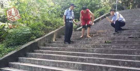 该男子意欲何为?珞珈山派出所高度重视,抽调精干力量组成专班开展调查。民警喻厚斌、刘非凡仔细调取案发地周边十余处监控探头视频资料,有了发现:当晚,在通往案发现场的台阶处,有一名身穿红色运动背心的男青年尾随在蕾蕾身后。经蕾蕾辨认,该男子就是推她的人。