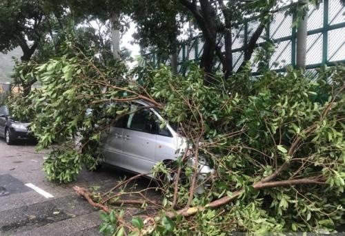 香港23日受到台风“天鸽”影响,多区都有塌树报告。图片来源:香港电台网站。