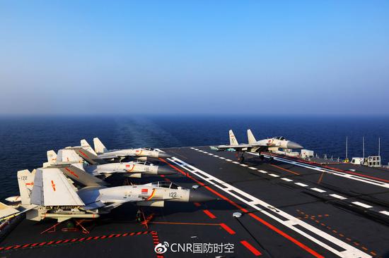 编队参谋长高兆瑞:此次跨区机动训练,编队以解决短板弱项为出发点,突出实战化要求,跨区实施编队课目训练,深化舰机战术融合,努力提升编队训练效益,为航母编队早日形成战斗力和保障力打下坚实基础。