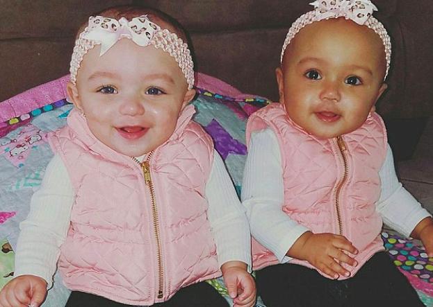 但是,随着双胞胎女儿慢慢长大,夫妻俩发现这两个宝宝长得不像不说,肤色也变了,一黑一白的……