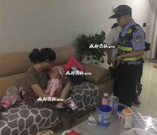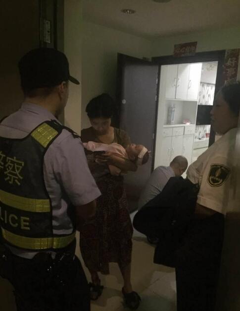 ▲女民警抱着婴儿