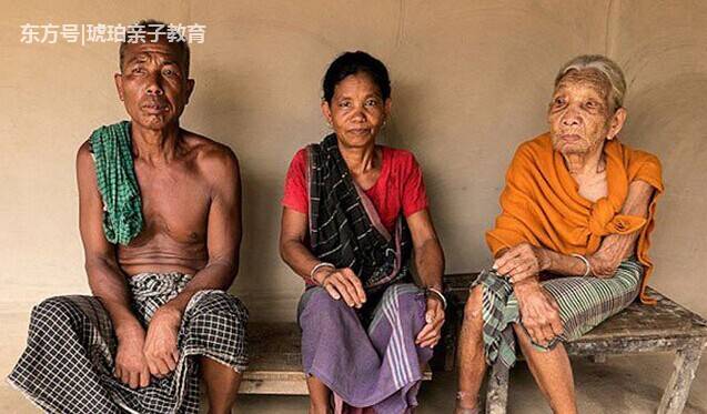 右边抱着小孩的女儿是Orola,她小时候在父亲去世后,就按照部落的传统和母亲一起嫁给了中间的男人。如今他们在一起已经生活了几十年,Orola也为丈夫生了两个孩子。