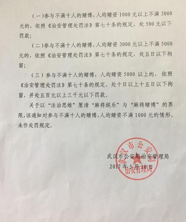 三、鉴于老百姓打麻将大多以娱乐为主要目的,建议具体数额标准可参考武汉大多数麻友目前实际标准。老百姓生活和娱乐水平逐年提升,具体标准或可适当放宽留有空间。