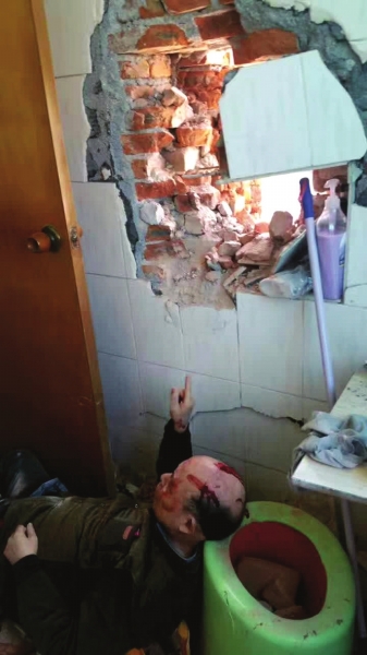 华声在线岳阳讯 4月2日中午12点45分,对于岳阳市民周桂树来说也许永生难忘,他在家中上厕所时,厕所墙被砸开一个大洞,一堆红砖碎石将他砸伤。对此,开发商负责人表示是施工误伤。目前,派出所已介入调查。