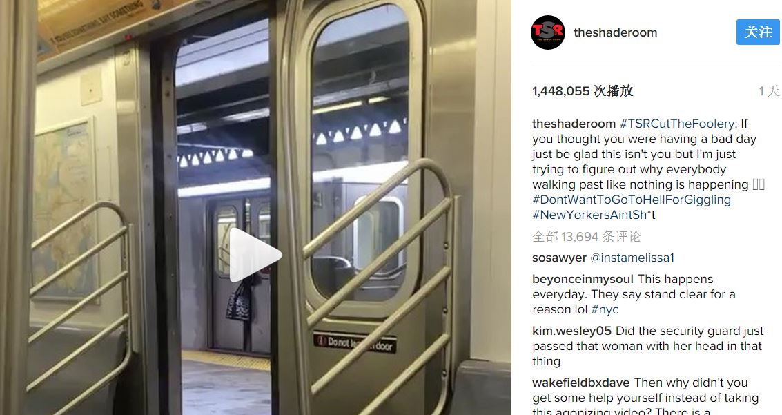 纽约女子被地铁门夹住头 数人经过无一人帮忙