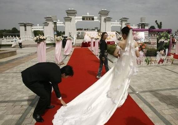 甚至还有小夫妻在陵园拍婚纱照