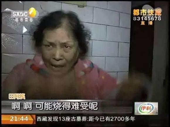 田阿姨:“十一点。"记者:“他喊啥呢?"田阿姨:“啊!啊!可能烧的难受呢,也没叫谁,也没说救命,就不说话。"