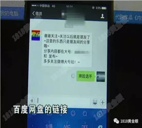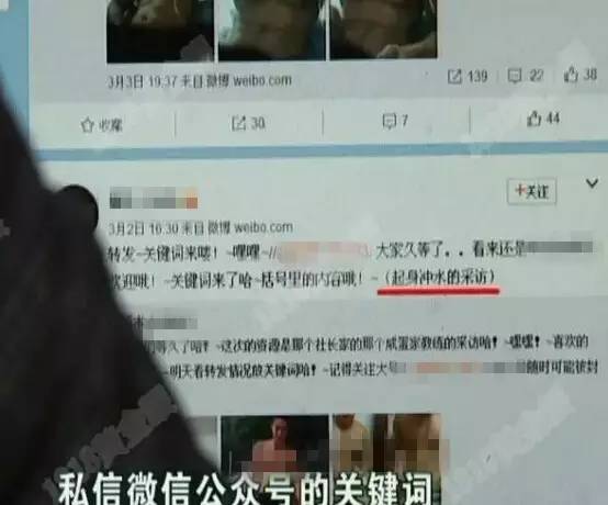 小张:“进入微博之后,公众号上面就是如何下载的,就是你关注公众号之后,私信微信公众号的关键词,他就会出现百度链接什么的,百度网盘的链接,有进去的密码 (这里面是什么画面?)就是色情的。”