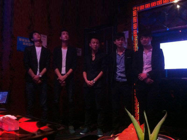 我就那样和他们在包房里坐着,心里七上八下的,不知道过了多久,应该不是很长时间,张姐就推门进来,告诉我们说有客人了。我就和他们一起出去,跟着她来到一个包房前,张姐推开房间的门,向里面的客人点头微笑,接着我们就很自觉的排成两排,站到房间的前面,我自然是站到后排。