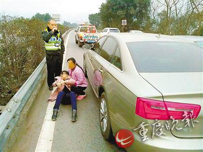 2月17日下午6时34分,执法队员由G85收费站向中梁山隧道方向巡逻,当巡逻至白市驿立交附近时,发现一辆银灰色奥迪A6停在超车道上,一名中年妇女躺在车旁,全身抽搐,脸色苍白,一名年迈的老太太扶着她正焦急的四处求救。