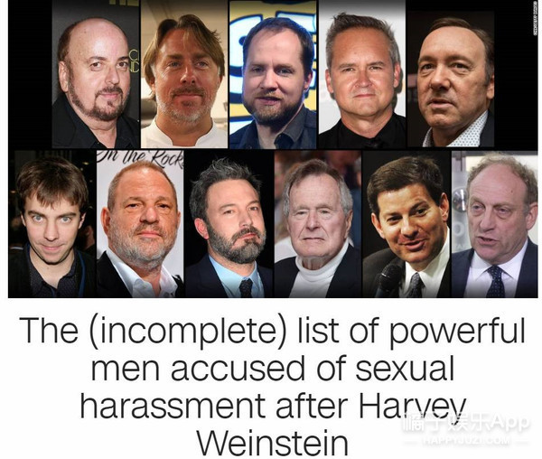 哈维丑闻被揭发后,越来越多的受害者受到鼓舞,开始自发带着“ME too”的tag在网上讲述自己的经历,并进行公开告发,这是部分因此陷入丑闻的男星名单:
