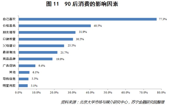 美国著名研究机构ComScore的统计显示,中国内地25-34岁主力消费人群占总人口比例早已超过30%,远在世界和亚太地区平均水平之上。这些消费人群所受教育和成长经历与年长一些的消费人群不同,形成了独具特点的消费心理和消费需求。以90后为例,他们普遍更加注重品质与服务,追求个性化、新鲜刺激多样化、高品质、体验式消费(见图11),由此引领了一波个性化、多样化消费需求的兴起。