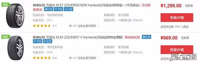 除了油耗和保养费用以外,车型的配件也是影响后期成本的一个重要因素。在面对一些冷门、进口或高端品牌车型的时候,会出现没有配件或配件价格高昂的情况,这些都是我们需要考虑的。但要说到配件方面,最影响费用的,还是易损件的消费,例如阿特兹两个不同尺寸的轮胎,一个是17寸,一个是19寸的。同样是原配轮胎,阿特兹的17寸轮胎价格是669元,而19寸轮胎则高达1299元,4轮更换的价格差距高达2400元,这一部分的价格足够你去购买更多的配置来丰盈你的汽车了。
