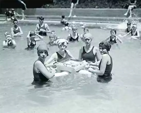 起源于中国的麻将其实早在上世纪20年代就传入美国。你以为在泳池里打麻将是中国人的专利?看看下面这张图 :