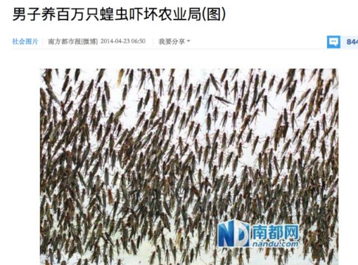 在山东,蝗虫养殖业比较普遍了。据《农村大众报》2015年报道,山东日照莒县安庄镇韦子沟村的左荣富,从4月初到11月中下旬,能养3~4茬蚂蚱,一亩地一年净赚3万~5万。“秋季最后一茬蚂蚱价格最高,能卖到35元/斤。”左荣富说。