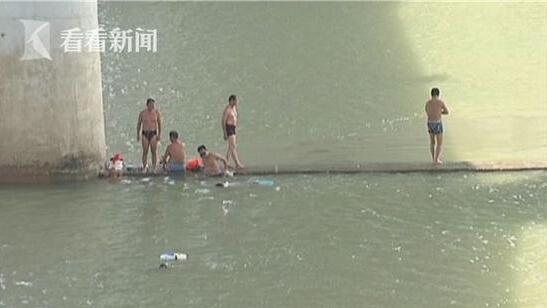 在邕江边,有很多小朋友是在家长的带领下下水游泳的。大部分的小朋友都穿有泳衣和救生衣,但我们也发现有个别的小朋友,他直接光着身子就下水了。那其实这样做,是很不卫生,也很不安全的。