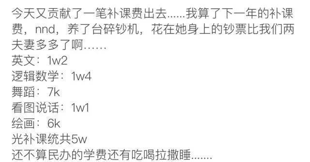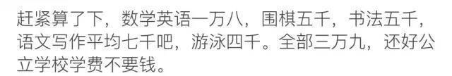 来自一位同事的心酸感慨:“我家娃一个暑假花了4万多。”小编这种未婚女青年听完都想丁克了!4万块钱可能是一个普通工薪阶层半年的工资,也可能是一个家庭一年的花销,对于很多工薪家庭来说,这不是小数目。但是这4万块钱用到孩子身上,有时候简直就不当钱花了。