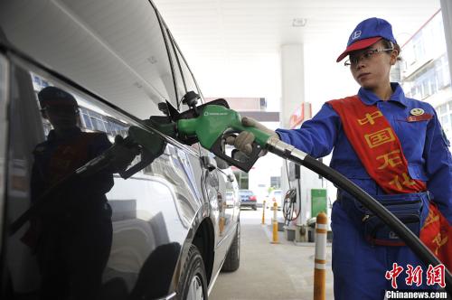 资料图:山西太原一加油站,工作人员为车主加油。中新社发 韦亮 摄