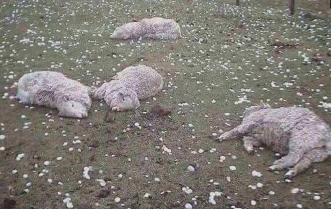 由于这次的冰雹个头很大,下降的速度迅疾,突然降落的冰雹让所有人都感到措手不及,一些正在户外的绵羊不幸被砸死了许多,它们横七竖八的躺在地上,给农户造成了很大的损失。