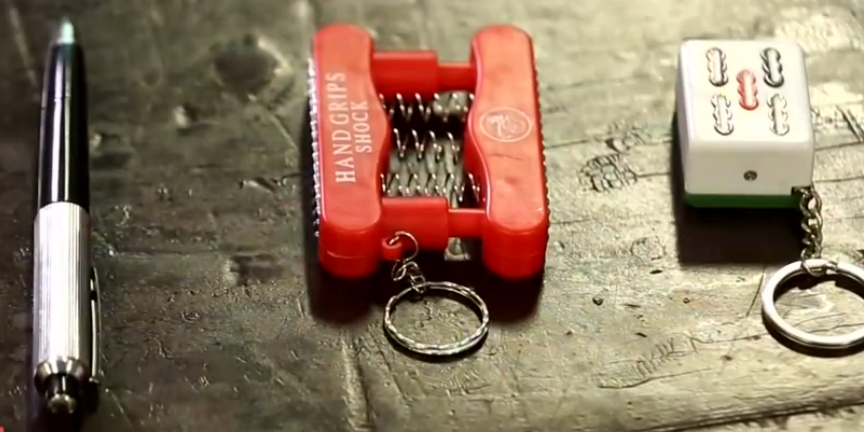 记者跟随一名小学生到学校附近商店购买了一个电力整蛊玩具,从外表看,这个玩具仿造麻将中五条做成的钥匙扣,底部有两个发光的的灯泡,再无其他说明。这名小学生告诉记者,这个花色为麻将的钥匙扣售价10元,只要按住五条中的红杠,这个钥匙扣中的金属环就会释放强大的电流,让触碰者浑身酥麻。随后记者也尝试体验,果不其然,只要按住开关,就会有强大电流通过手心传遍全身,同时接触金属环的手臂皮肤还会有灼热感。