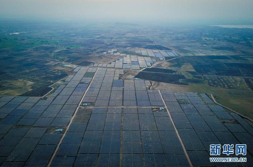▲印度南部城市海德拉巴附近的一处光伏电站。中国企业为该电站提供了部分太阳能面板组件和全套的自动日照追踪支架系统。