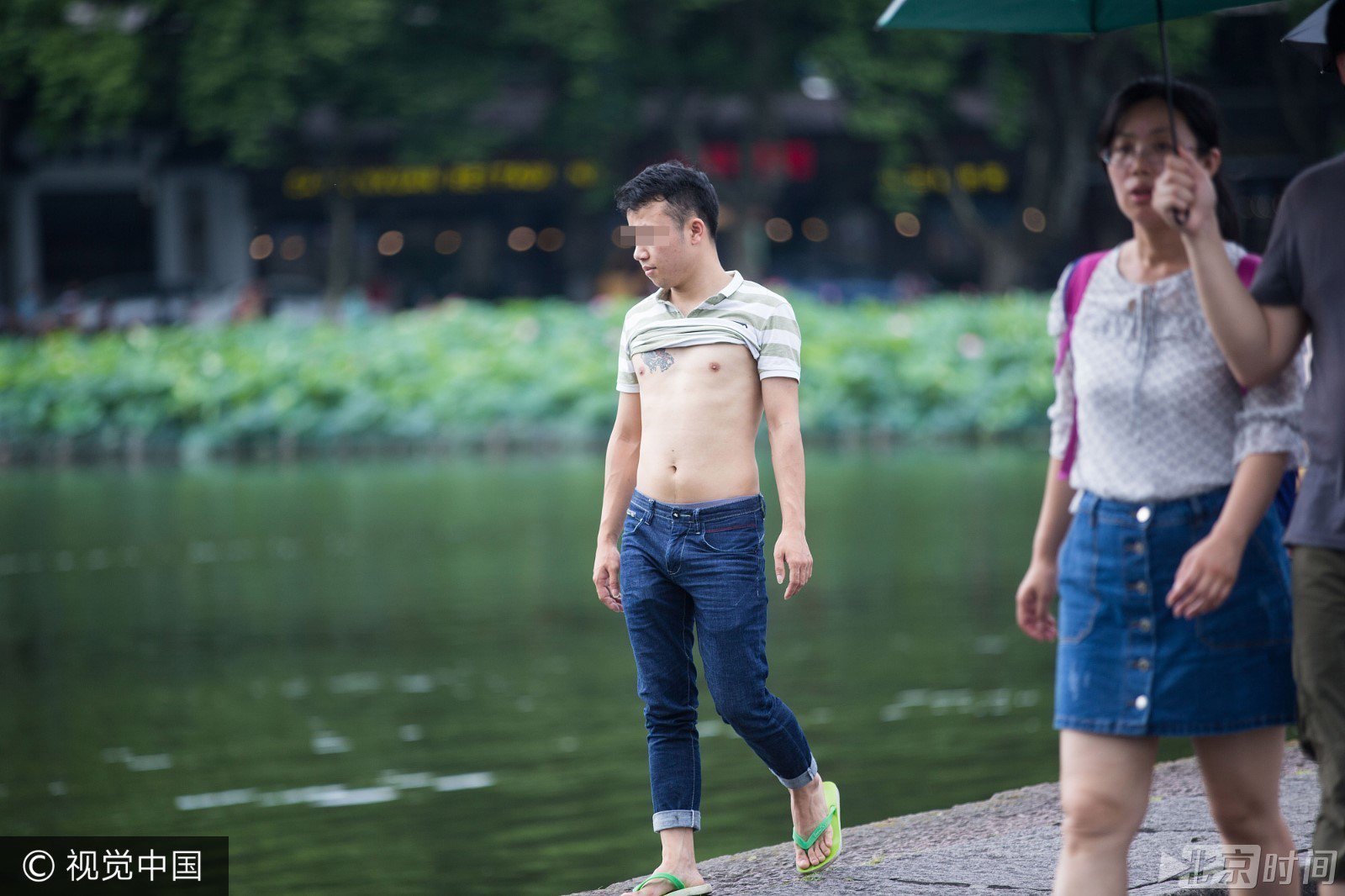 天气越来越热,在浙江省杭州市西湖景区内,“光膀子”游玩的游客越来越多,看上去有点“辣眼睛”。