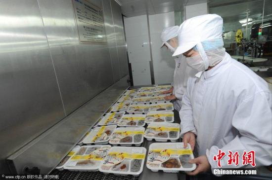 探访高铁盒饭生产车间 消毒严格全副武装。青木 摄 图片来源:CFP视觉中国