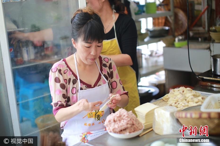 2017年7月9日,重庆,一位40多岁的黄大姐用两根手指包抄手,十分娴熟,一天包2400个抄手。大姐开面馆20年,从忠县老家奋斗到主城,靠一双不健全的手挣了两套房。