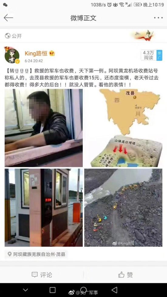 原标题:九寨沟机场出口收费站向参与四川茂县救灾军车收费!小伙强硬!我管你们是来干什么的!!