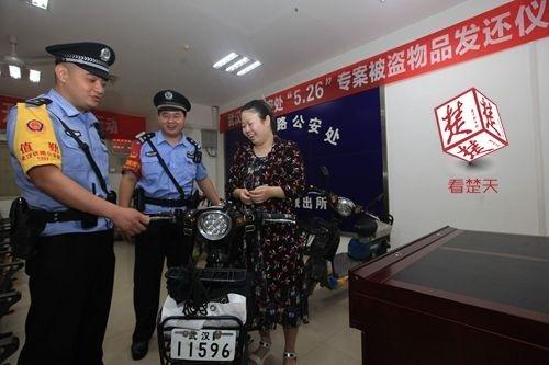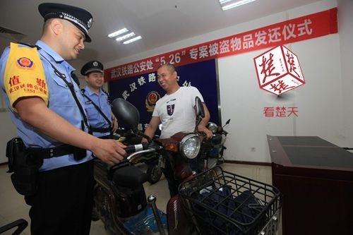 失主开心的从武汉铁路公安处警方领回电动摩托车