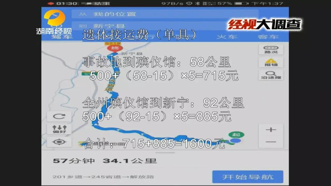 邵阳新宁的一辆小车,前段时间在临近的广西全州县发生翻车事故,车上五人中,司机和一位后排乘客不幸当场身亡。广西全州县交警处理了这起事故,可接下来却发生了一件让死者家属寒心又愤怒的事,死者家属来到相距不到100公里的广西全州县境内,想要运回遗体,没想到竟然被索要15000元,第二天更涨价到16800元,不给钱就不给遗体,而且还不开任何票据。是谁要收取这天价运尸费?又是谁在挟尸要价,把遇难者的遗体当做筹码呢?来看记者的调查。