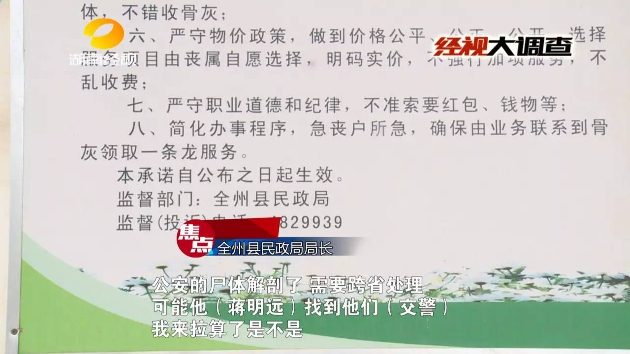 记者随后将此事反映到全州县委县政府,县政府高度重视,经过初步清算,整个运送遗体过程所发生的费用每人只有2000元,两具加起来也只要4000元,而蒋姓男子收取的16800元,超过了收费标准的四倍!