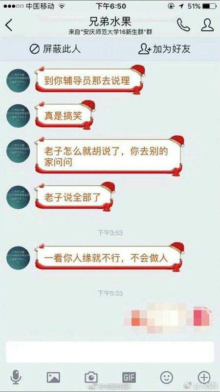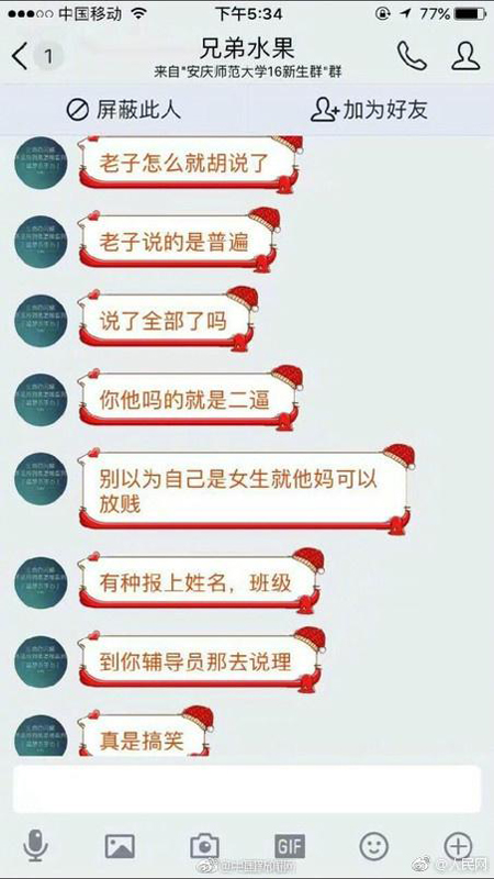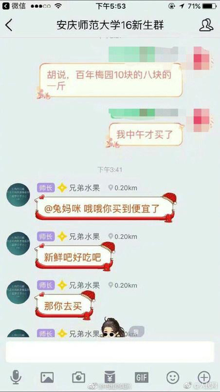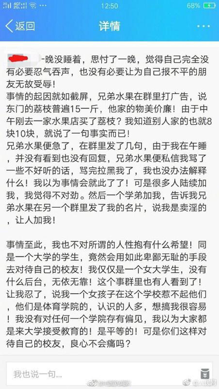 该校女生与商家部分聊天记录。 本文图片均来自@人民网