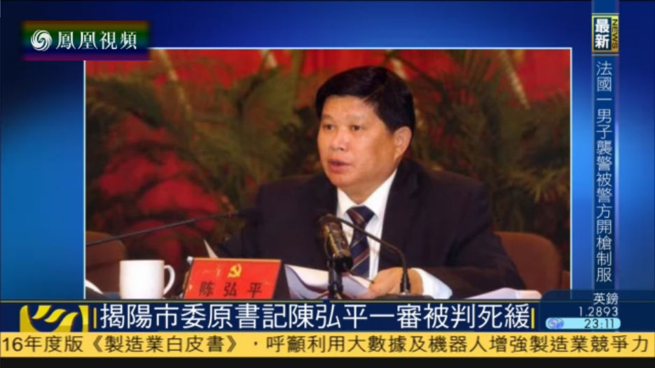 资料视频:揭阳市委原书记陈弘平一审被判处死缓