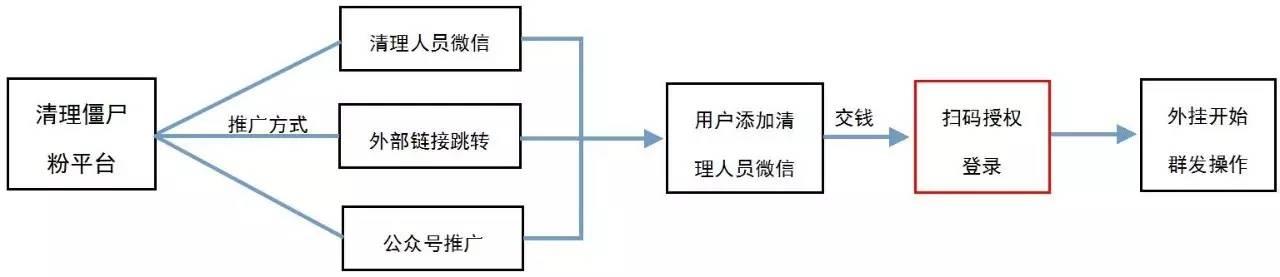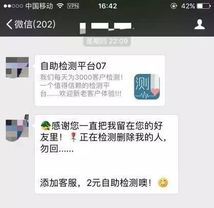 4、对方用来为自己的微信号引流,有“业内人士”甚至发出微信公众号解释了整个操作过程:帮人检测僵尸粉,利用清粉的理由去群发广告,广告的内容是名片+文字。引更多的人来检测僵尸粉,关注公众号之后,引导他们去添加检测僵尸粉的客服,然后加客服个人号继续检测和裂变。