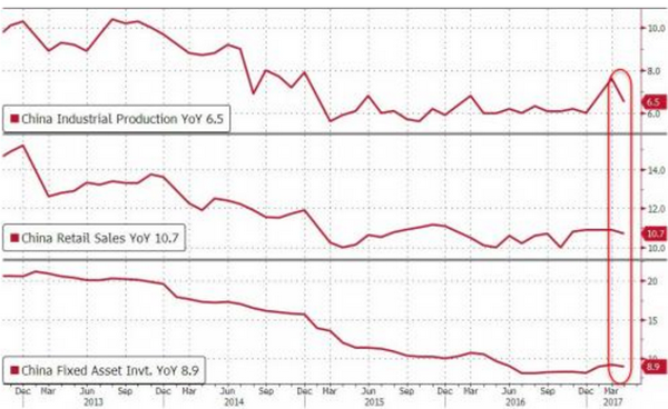 根据中国统计局发布的最新数据来看,今年四月中国经济各项核心指标数据普遍低于市场预期水平,这也加剧了投资者对中国经济发展前景的担忧。