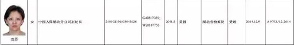 中央纪委监察部网站信息显示,徐进和刘芳都于2011年5月出逃美国。徐进因涉嫌受贿罪和滥用职权罪,于2012年7月5日被红色通缉令通缉;刘芳则因涉嫌受贿犯罪,被湖北省检察院立案,2014年12月9日由国际刑警组织发布红色通缉令。