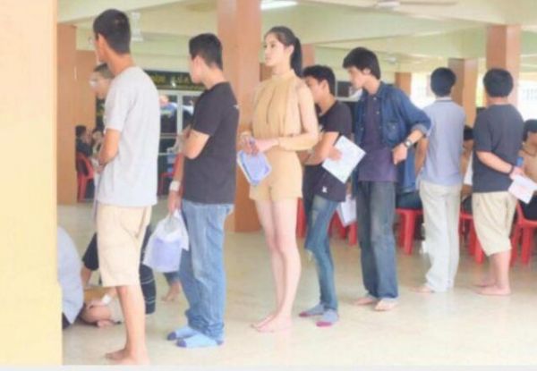 据台湾“中央社”4月6日报道,泰国的征兵审核队伍中,出现一位荣获两届泰国变性选美冠军Nadia Patta,她一现身,吸引在场男子的目光,亮丽的身影,排在一堆男性中十分突出。