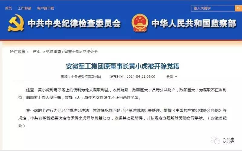 中纪委通报前后两任安徽军工集团董事长被查